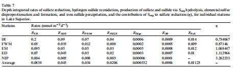 研究意義:圖5和 圖6是本研究最重要的量化成果。它們清晰地表明,當上覆水硫酸鹽濃度低于~500 μM時,有機硫的貢獻變得至關重要(η > 50%)。特別是在蘇必利爾湖(~40 μM)這樣的超低硫酸鹽環境中,η值可大于1,甚至達到3以上(表7),意味著硫酸鹽還原完全由內部來源支撐。這為預測不同環境中有機硫的重要性提供了定量工具。