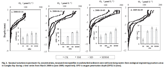 數據來源:圖2(caption: "Seasonal variations in porewater O2 concentrations")和正文中OPD變化描述。