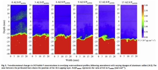 研究意義:圖5以二維圖像的形式,直觀地證實了磷濃度的空間異質性和“靜態層”的存在。圖像顯示,在ALS處理后,表層沉積物(尤其是ALS覆蓋層)的磷通量(以顏色深淺表示)顯著低于深層,強化了磷被有效固定在上層沉積物中的視覺證據。