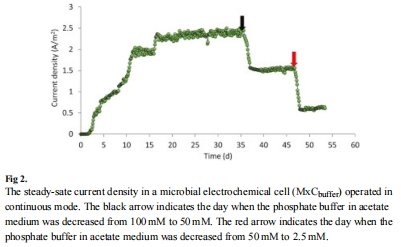 數據來源:圖2(caption: "The steady-state current density in a microbial electrochemical cell...")。