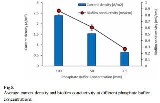 數據來源:圖5(caption: "Average current density and biofilm conductivity at different phosphate buffer concentrations")。