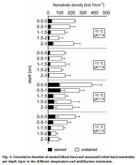 數據來源:各處理組不同沉積深度的線蟲染色與未染色數量展示在文檔圖4中。