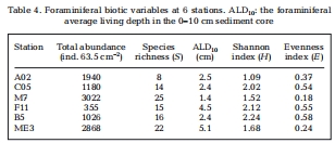 數據來源:有孔蟲的垂直分布模式展示在 文檔圖5中;各站點的總豐度、物種數等群落參數總結在 文檔表4中。