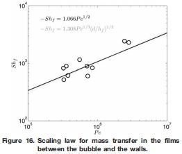 數據來源:液膜傳質分率與總傳質速率的對比展示在 文檔圖15中。液膜傳質的舍伍德數標度律展示在 文檔圖16中。