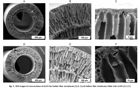 數(shù)據(jù)來源:含填料與不含填料的中空纖維膜的SEM截面圖像對比展示在 文檔圖3中。