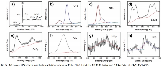 晶體結構:XRD驗證g-C?N?的層狀結構,NiS和LaFeO?的衍射峰因高分散性未檢測到(圖1)。