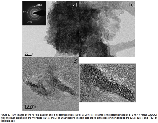 數據內容:NiFe16的雙電層電容(Cdl=108 μF cm?2)略高于參比物(NiFe氧化物:96 μF cm?2),TOF值(0.100 s?1)為參比物的2-8倍。