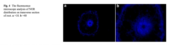 4 熒光顯微鏡圖像數(shù)據(jù)來(lái)自Fig. 4,研究意義是直觀(guān)展示諾氟沙星在根部的空間分布,證實(shí)其主要在細(xì)胞外部(質(zhì)外體途徑),未進(jìn)入細(xì)胞,說(shuō)明轉(zhuǎn)運(yùn)機(jī)制。