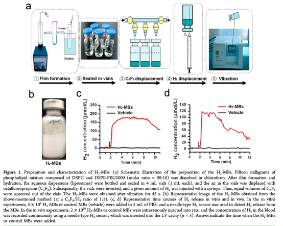 論文摘要指出,心肌缺血再灌注損傷是全球發(fā)病和死亡的主要原因。氫氣作為一種抗氧化劑,在預(yù)防和治療缺血再灌注引起的致命損傷方面顯示出巨大潛力。然而,氫氣在水中溶解度低,導(dǎo)致其在血液和受損組織中的生物利用度差。研究開發(fā)了一種超聲波可見的氫氣遞送系統(tǒng),通過將氫氣加載到微泡中(H2-MBs),以預(yù)防心肌缺血再灌注損傷。該系統(tǒng)在正常溫壓條件下可大幅提高單位體積內(nèi)的氫氣濃度。H2-MBs可通過超聲成像系統(tǒng)進行視覺跟蹤,并能有效釋放治療氣體。在心肌缺血大鼠再灌注開始時進行體內(nèi)系統(tǒng)遞送H2-MBs,結(jié)果顯示梗死面積和病理重塑顯著減少。進一步分析表明,該方法明顯抑制了心肌細胞凋亡,并減少了心肌炎癥和氧化損傷。結(jié)果表明,H2-MBs是一種有前景的氫氣治療應(yīng)用的視覺遞送系統(tǒng)。
