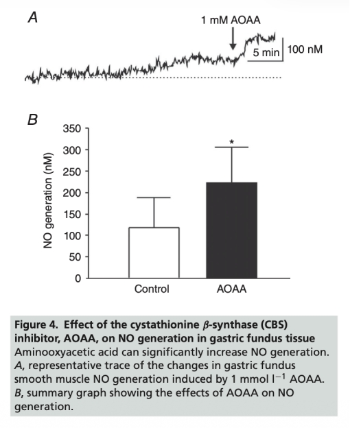 4 AOAA對NO生成的影響數(shù)據(jù):AOAA(CBS抑制劑,1 mM)顯著增加NO生成,從119±70 nM升至221±84 nM。數(shù)據(jù)來自圖4。研究意義在于證明內(nèi)源性H2S抑制NO生成,因為抑制H2S合成后NO水平上升,揭示了H2S對NO的負(fù)調(diào)控作用。
