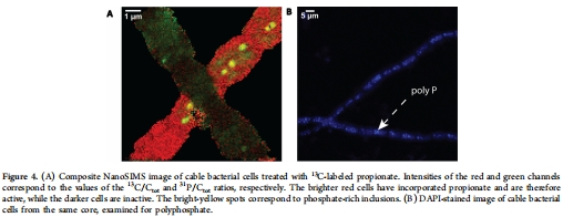 數據:NanoSIMS圖像顯示電纜細菌細胞內有磷富集點,但計算表明其庫存量遠低于鐵結合磷。