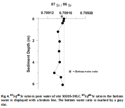 數(shù)據(jù):在SO205-59GC位點,深層沉積物孔隙水的??Sr/??Sr比值與底層海水的比值非常接近。