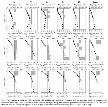 溶質通量計算:通過監測上覆水濃度隨時間的變化,計算沉積物-水界面的溶質擴散通量(圖4和文內表格)。
