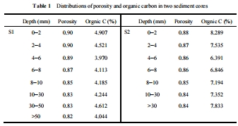 數據:孔隙度從表層(0.90)向深層(0.82)遞減;有機碳含量S2(7.35–8.29%)高于S1(3.97–4.91%)。