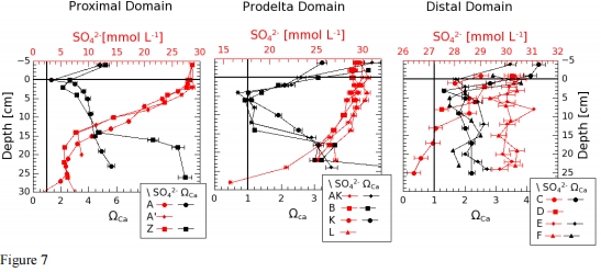 鈣和硫酸鹽濃度剖面(來自圖7和圖8):