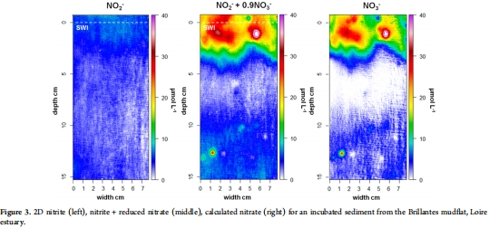 水-沉積物界面上毫米尺度展現亞硝酸鹽硝酸鹽圖像