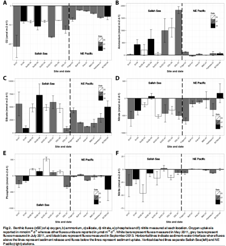 研究意義:這些通量直接量化了沉積物-水界面的生物地球化學過程,如有機質礦化速率。通量變異反映了環境梯度的影響,例如東北太平洋站點通量普遍低于薩利希海,凸顯了深度和氧化還原條件對生態系統功能的控制。