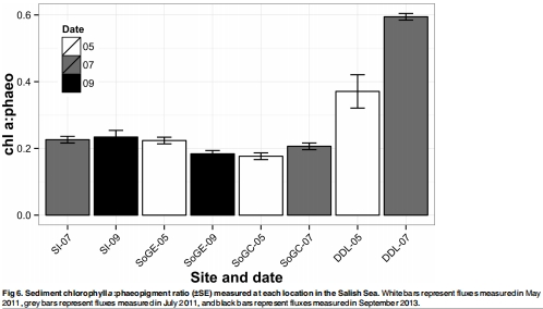 空間和時間差異顯著:東北太平洋通量低于薩利希海,源于更深、更冷、更缺氧的條件;薩利希海通量隨時間變化(如春季水華后升高),反映有機質輸入脈沖。