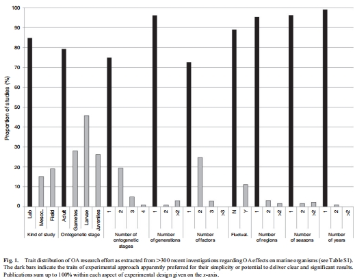 在沿海系統評估海洋酸化的影響所取得的成就?常用的實驗研究方法因其具有遺漏性,限制性等因素特別強調在對波動性的數據的進行忽略