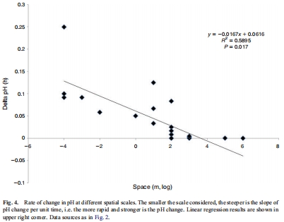 數據:圖4顯示,pH變化速率隨尺度減小而增加(微尺度達>0.1單位/分鐘),開闊海變化緩慢。