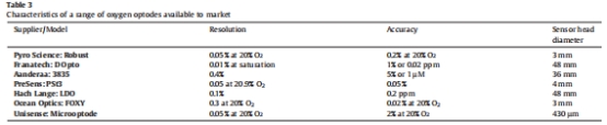 商用設(shè)備評(píng)述:列舉代表性產(chǎn)品(如Aanderaa氧光極、Honeywell Durafet pH-ISFET)的性能指標(biāo)(如表3展示氧光極參數(shù))。