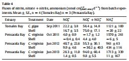 銨通量和氧消耗(來(lái)自Table 3和Table 4)