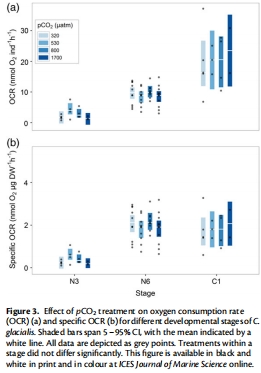 耐受性證實(shí):C. glacialis早期發(fā)育階段(卵到C1)對(duì)pCO?升高(直至2300年預(yù)測(cè)水平)不敏感,發(fā)育率、生長(zhǎng)和代謝均未受影響。