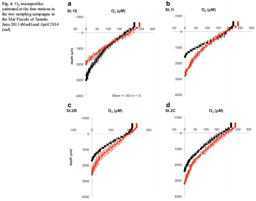 氧消耗速率計算:Unisense微剖面(如Fig. 6顯示St. 1I站點氧快速耗盡)用于計算areal氧消耗速率(文檔3.3.2節(jié)),結(jié)合黑暗孵育,證實系統(tǒng)凈異養(yǎng)(氧消耗>生產(chǎn))。例如,St. 2B站點氧消耗速率最高(-0.48 μmol O? cm?3 h?1),指示高礦化活動。