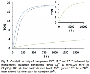 研究意義:203?在CeIV氧化下TON達47,高于153?(27),證實電子給體基團提升活性;光驅動實驗中,203?與[Ru(debpy)?(bpy)]2?組合效率最高,凸顯光敏劑氧化電位匹配的重要性。這些數據驗證了取代基策略的有效性。