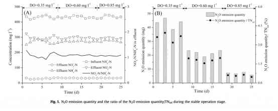 1 數(shù)據(jù)來自圖1和表2:測量了不同DO濃度下的N2O排放量和排放因子。研究意義是量化DO對N2O排放的負面影響,顯示增加DO可減少排放,為優(yōu)化操作條件以減少溫室氣體提供依據(jù)。