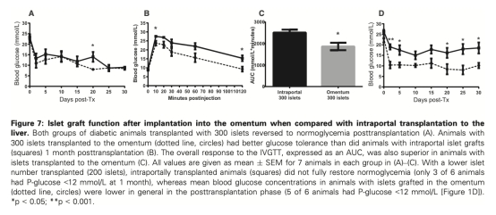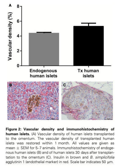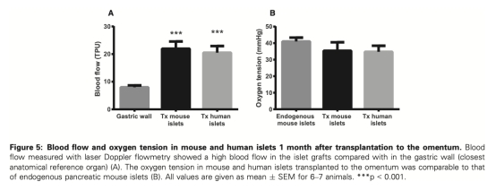 移植到大網膜的小鼠和人類胰島的血管化和氧合快速恢復可能有助于其優于門靜脈內移植胰島的功能