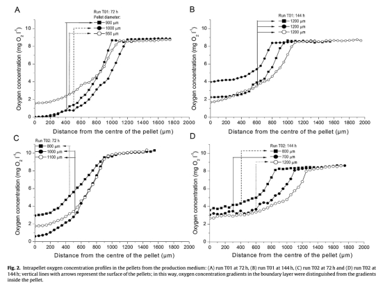 2 pellet內(nèi)氧氣濃度數(shù)據(jù):來自表1和圖2,使用丹麥Unisense電極測(cè)量pellet內(nèi)氧氣濃度剖面,包括pellet直徑、表面氧氣濃度和內(nèi)部濃度下降值。研究意義:數(shù)據(jù)直接證明pellet結(jié)構(gòu)影響氧氣滲透,松散pellet(如實(shí)驗(yàn)T02)允許氧氣更深穿透,避免內(nèi)部缺氧,從而關(guān)聯(lián)形態(tài)與洛伐他汀生產(chǎn)優(yōu)化。這為形態(tài)工程提供了量化依據(jù),顯示小、松pellet能改善細(xì)胞活性和代謝。