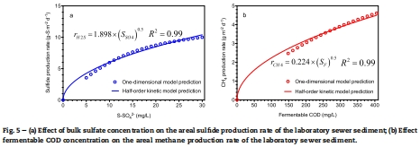 硫化物和甲烷生產速率可用半階動力學模型描述,分別依賴于水體硫酸鹽和可溶性COD濃度,這為下水道網絡建模提供了實用工具。