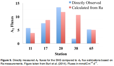 數據內容:本研究通過培養箱直接測量的總堿度通量與另一項基于鐳同位素估算的通量高度一致。