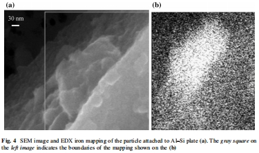 數據來源:圖3展示了各種微觀結構;圖4展示了附著在鋁硅板上的顆粒及其鐵元素面分布圖。