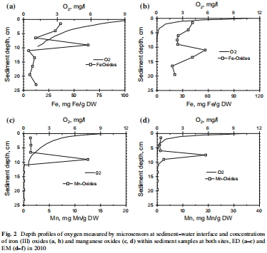 數據來源:圖2展示了兩個站點的氧氣垂直剖面以及鐵(III)氧化物和錳氧化物的深度分布。