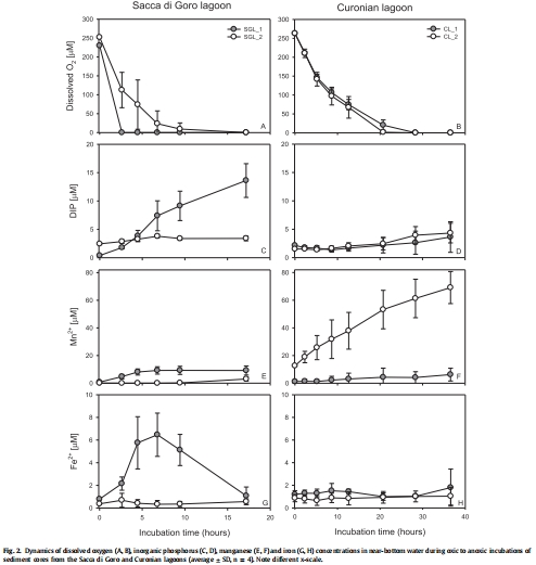 本研究調查了短期缺氧對兩個富營養化歐洲潟湖(波羅的海的庫爾斯潟湖和地中海的薩卡迪戈羅潟湖)河口沉積物中磷遷移性的影響。這兩個研究區域在氣候和鹽度上有所不同:北部的庫爾斯潟湖是寡鹽性的,而地中海的薩卡迪戈羅潟湖是中鹽性的。在每個潟湖中選擇兩個站點,分別代表受河流羽流排放影響的區域和受高有機質沉積影響的區域。通過黑暗條件下完整柱芯培養,測量了在氧化和缺氧條件下的溶解氧、無機磷、二價鐵和二價錳的底棲通量。結果表明,短期缺氧僅對薩卡迪戈羅潟湖中有機質豐富且鹽度較高的站點的DIP(以及硫化物和Fe2?)底棲通量產生顯著影響,而其他站點的內部緩沖機制阻止了無機磷的再生。