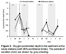 Oxygen flux and penetration depth in the sediments of aerated and non-aerated lake basins