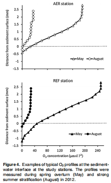 曝氣和不曝氣湖盆沉積物中的氧通量和滲透深度