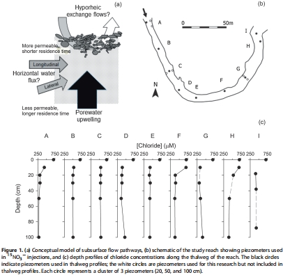 本研究旨在探究在滲透性河床沉積物中,硝酸鹽消耗的空間變異性(特別是深度分布);研究控制硝酸鹽消耗的因素,利用Damk?hler數探討停留時間(水文控制)和生物地球化學控制的相互作用;并評估深層(>10厘米)河床沉積物作為硝酸鹽匯的重要性。