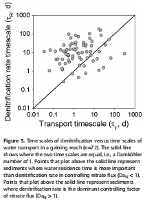 傳輸速率和反應速率之間的相互作用作為控制可滲透的河床沉積物中硝酸鹽衰減