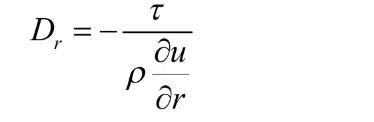 式中:Dr為徑向紊動(dòng)擴(kuò)散系數(shù);τ為距管軸為r處的紊動(dòng)切應(yīng)力;u為距管軸為r處的流體流速。