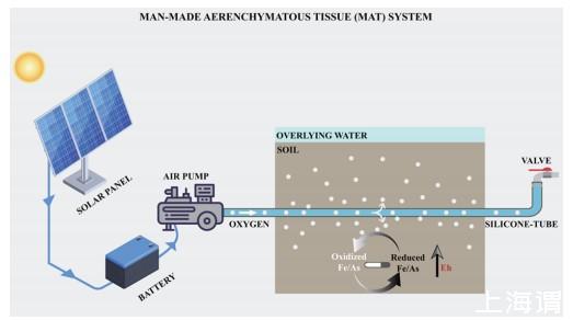 研究簡介:砷(As)作為一種主要的環(huán)境污染物,對人類健康構成的威脅,尤其是在通過大米消費途徑。砷在環(huán)境中主要以四種形態(tài)存在,其中亞砷酸鹽(As(III))是最有毒和最易遷移的形式。由于大米是全球大量人口的主要食物來源,減少大米中的砷積累對于減輕其對人類健康的威脅至關重要。傳統(tǒng)的減少稻田土壤中砷污染風險的方法包括化學洗滌和植物修復,但這些方法存在一定的局限性,如成本高昂、可能惡化土壤質(zhì)量或需要復雜的處理程序。因此,發(fā)展可持續(xù)的治理技術成為挑戰(zhàn)。文章提出了一種新的方法,即利用人造氣孔組織(MAT),通過模擬植物根系釋放的氧氣來增加土壤的氧化還原電位(Eh),從而降低砷的生物有效性。MAT的設計基于硅膠管,通過空氣泵向土壤中輸送氧氣,以提高土壤Eh并促進鐵和砷的氧化。實驗結果表明,MAT可持續(xù)地提高土壤Eh水平,顯著降低溶解有機碳、鐵、錳和砷的濃度,并為溶解砷提供額外的吸附位點。此外MAT還通過增強土壤中aioA基因的相對豐度,促進砷酸鹽氧化為移動性較低的亞砷酸鹽,從而減少大米中的砷積累。