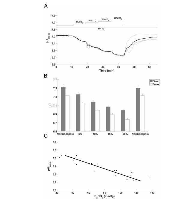 分級正常氧高碳酸血癥期間的pHbrain變化