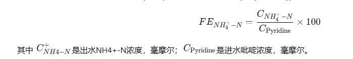 吡啶和TOC去除效率根據(jù)Shen等人(2015)確定,氨形成效率(FE_{NH4+-N})由以下公式計(jì)算: