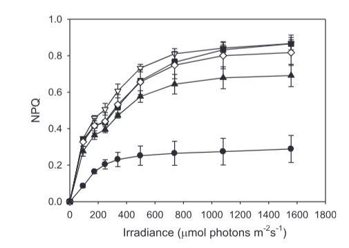 | NPQ_max | 0.211 ± 0.031 | 0.337 ± 0.021 | 0.384 ± 0.022 | 0.406 ± 0.005 | 0.491 ± 0.027 |