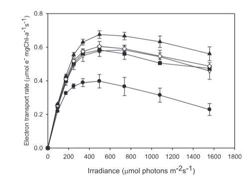 | ETR_max (μmol e? mg Chl-a?1 s?1) | 0.174 ± 0.021 | 0.268 ± 0.005 | 0.272 ± 0.002 | 0.289 ± 0.003 | 0.326 ± 0.013 |