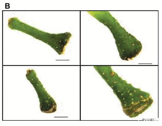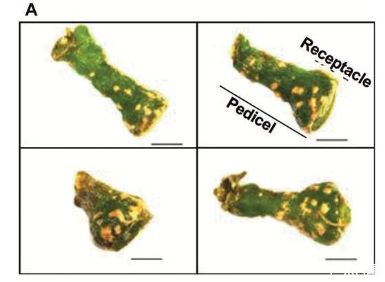 擴散到漿果中的阻力差異可能會影響[O 2]分布。花梗皮孔可能提供O的途徑,2進入這可以解釋朝向漿果中心軸的較高濃度。Chardonnay(之間的皮孔形態存在明顯差異圖6A)和Shiraz漿果(圖6B)。與設拉子漿果相比,霞多麗花梗上的單個皮孔更大,總表面積占花梗表面積的比例也大10倍(圖6C)。