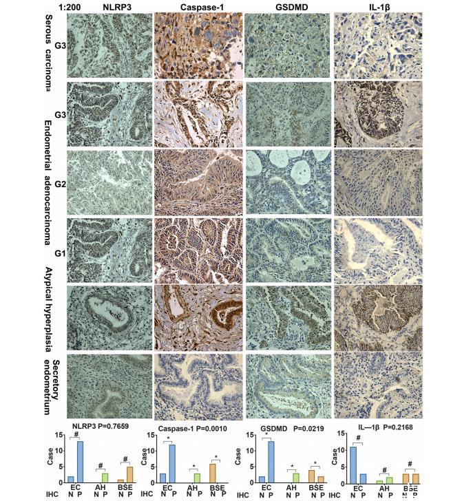 焦亡相關(guān)蛋白 NLRP3、caspase-1 和 GSDMD 在子宮內(nèi)膜癌組織中過表達