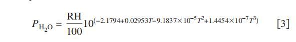式中,PH2O是水蒸氣分壓(atm),RH是相對濕度(%),T是溫度(°C)。